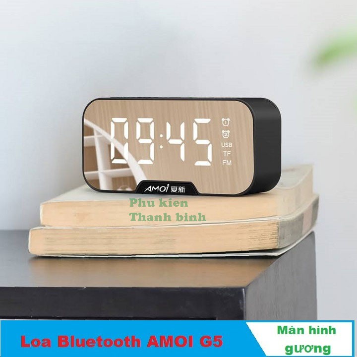 Loa bluetooth AMOI G5 nghe đài FM kiêm đồng hồ báo thức - màn hình soi gương - vỏ kim loại