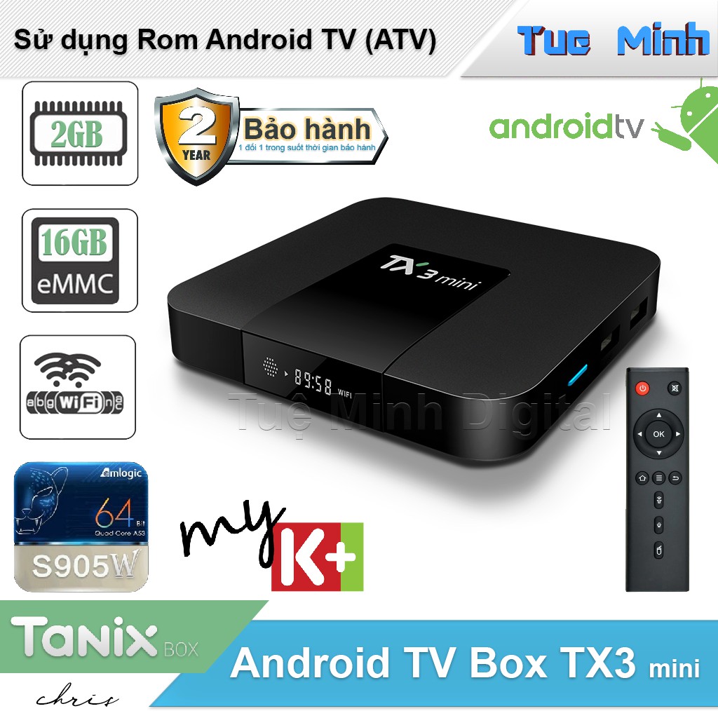 Android Tivi Box TX3 mini - 2G Ram và 16G bộ nhớ, Bluetooth, MyK+, AndroidTV 8.1 - BH 2 năm