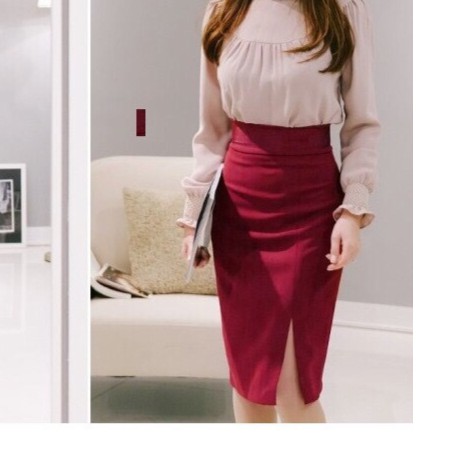 [Chân váy] CHÂN VÁY BÚT CHÌ SẺ TRƯỚC màu đỏ đô, chiều dài váy 55-60cm
