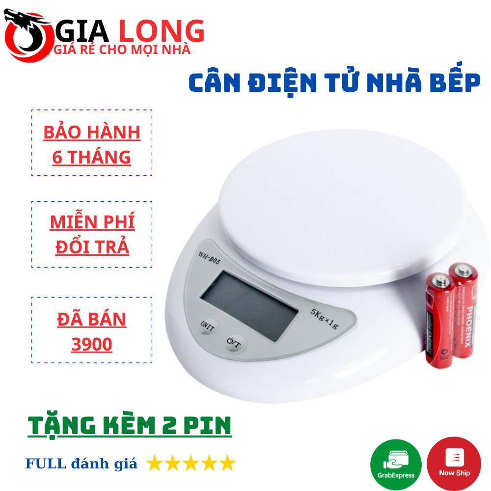 Cân Điện Tử Nhà Bếp | Cân Chia Thực Phẩm 5kg + Tặng Kèm 2 Pin AAA free ship