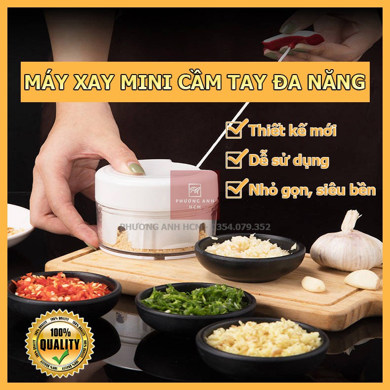 Máy Xay Thực Phẩm (Tỏi, Ớt, Gừng, Thịt, Cá,...) Cầm Tay Đa Năng - Dụng Cụ Xay Nghiền Tỏi Ớt Mini Food Chopper free ship